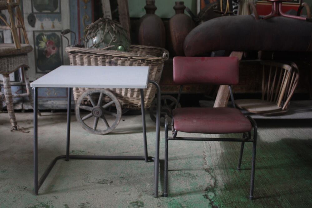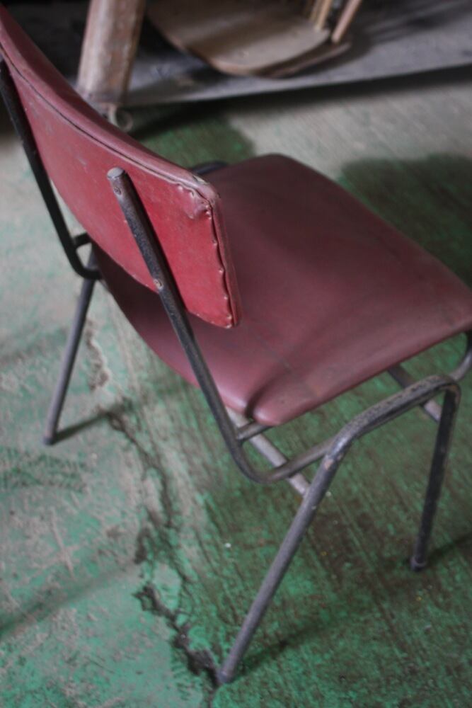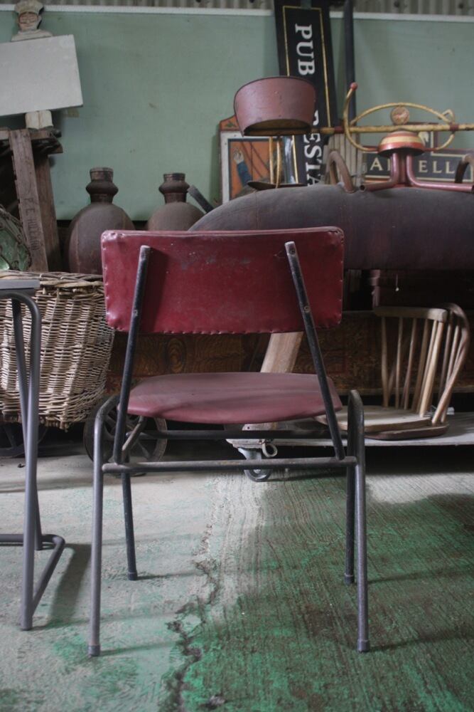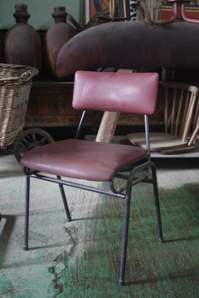 スチール脚とビニールレザーの張り生地のレトロなチェアは、デンマーク1950年代。