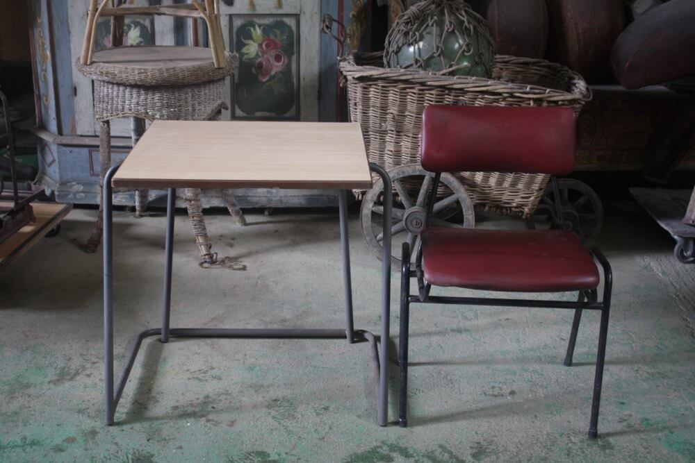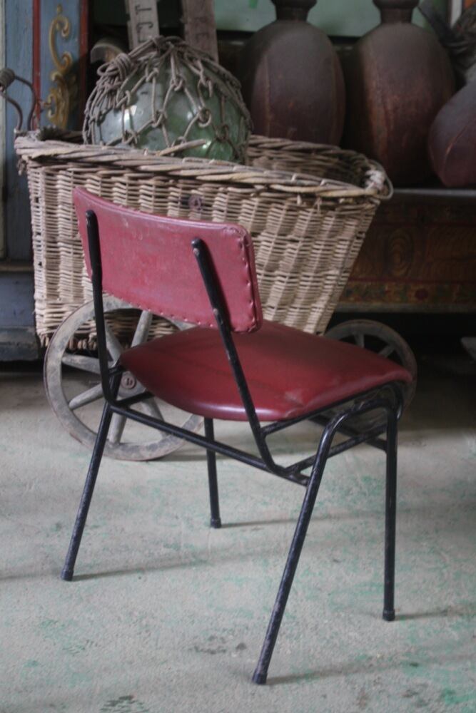 スチール脚とビニールレザーの張り生地のレトロなチェアは、デンマーク1950年代。