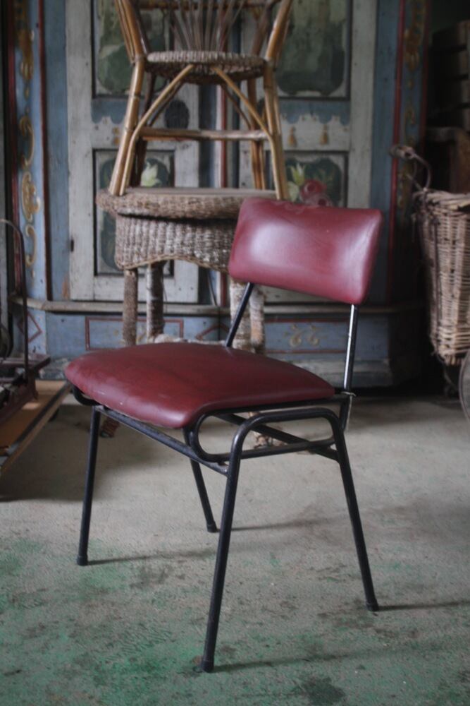 スチール脚とビニールレザーの張り生地のレトロなチェアは、デンマーク1950年代。
