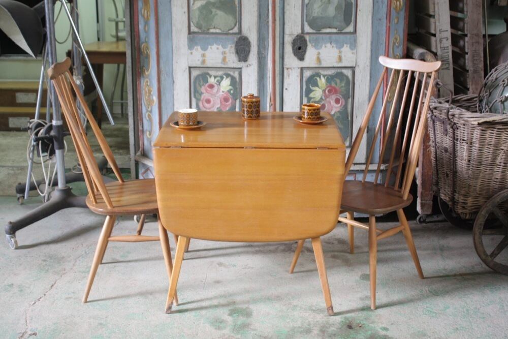 こちらは、スモールドロップリーフテーブルに、作業や食事に適したゴールドスミスチェア2脚を合わせたセット。