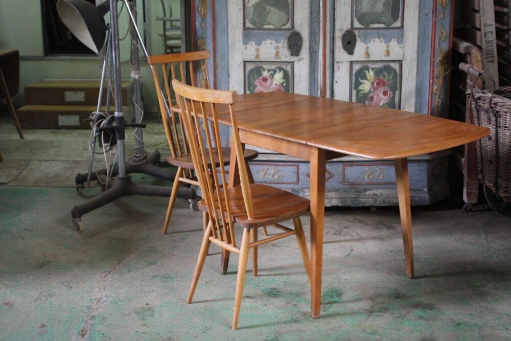長期レンタル専用】ERCOL スモールドロップリーフテーブル ダイニング3点セット6