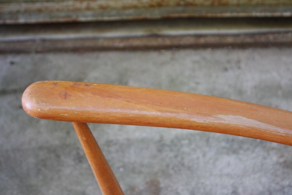 フレームは、ビーチ材で作られており、座面部分はウェービングテープが貼られています。