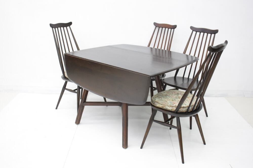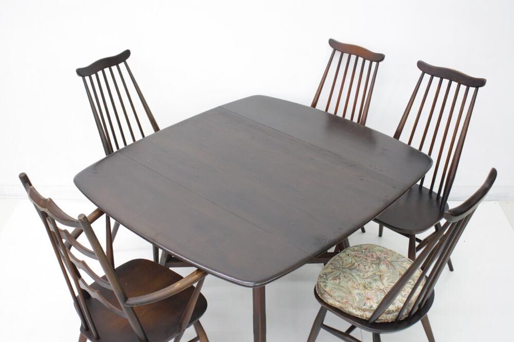 ERCOL(アーコール)社オールドコロニアルシリーズの、スクエアドロップリーフテーブルと、ゴールドスミスチェアとのセット。